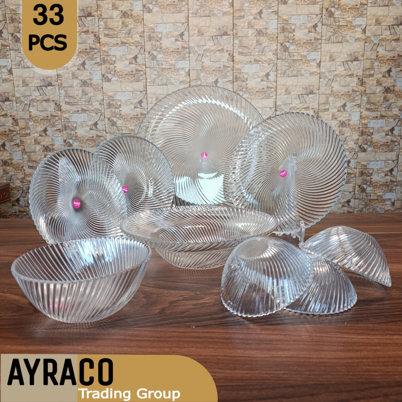 سرویس ۳۳ پارچه بلور نوری تازه مدل سولو لب نقره | مقاوم و نشکن | شش نفره