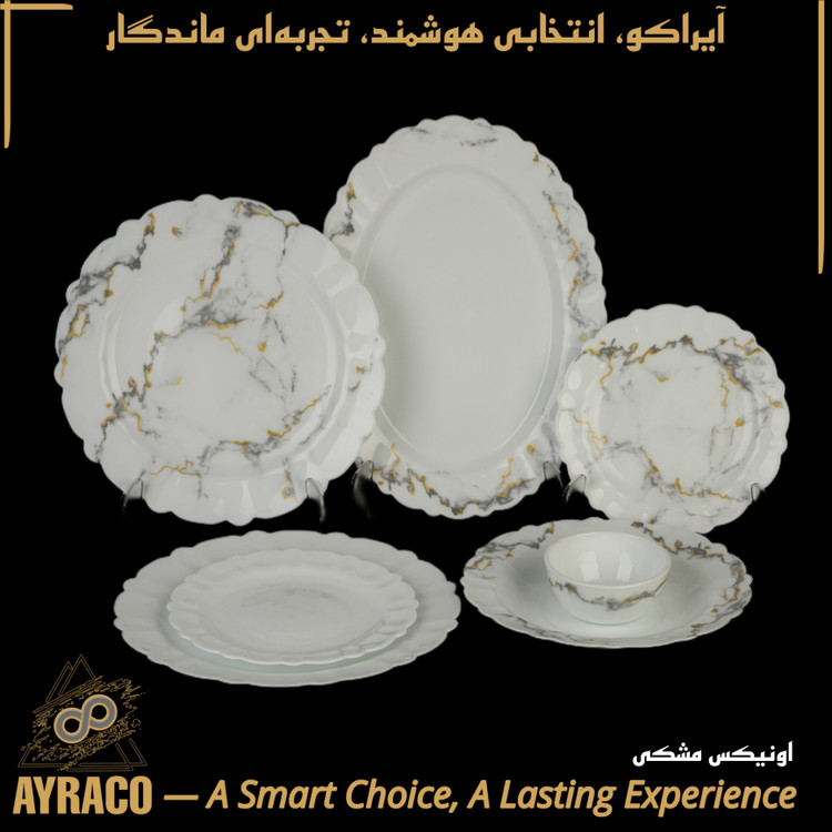 در این سرویس، برخلاف مدلهای ۲۶ پارچه، کاسه سالاد وجود ندارد؛ اما با همین ترکیب هم نیازهای اصلی یک میز غذاخوری کامل را تأمین میکند.