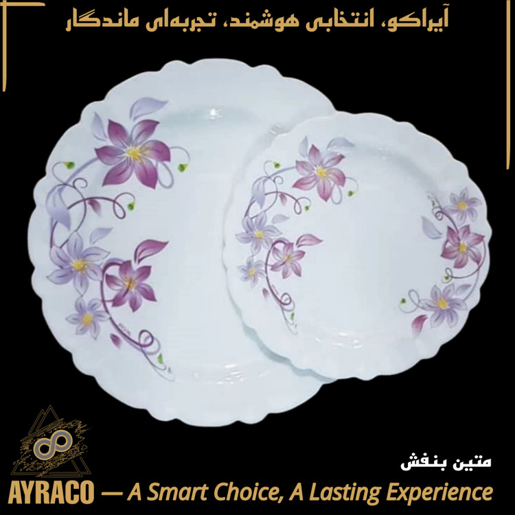 در این سرویس، برخلاف مدلهای ۲۶ پارچه، کاسه سالاد وجود ندارد؛ اما با همین ترکیب هم نیازهای اصلی یک میز غذاخوری کامل را تأمین میکند.