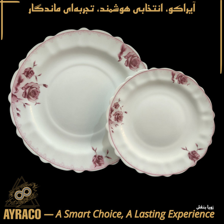در این سرویس، برخلاف مدلهای ۲۶ پارچه، کاسه سالاد وجود ندارد؛ اما با همین ترکیب هم نیازهای اصلی یک میز غذاخوری کامل را تأمین میکند.