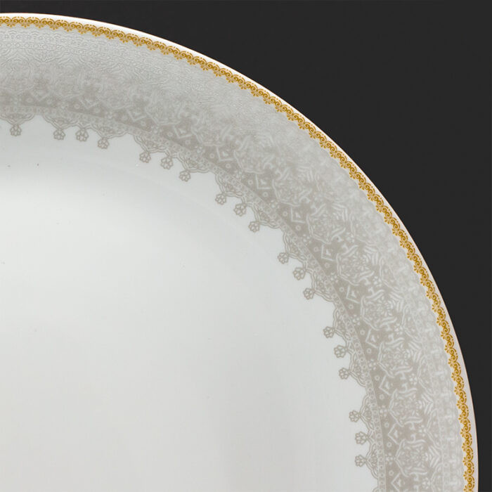 در مدل کف گل، برخلاف مدلهای سنتی با طرحهای حاشیهای، نقشهای هنرمندانهی گلها با تنالیته رنگی روشن، در مرکز هر ظرف چاپ شدهاند. این طراحی نهتنها جلوهای دلنشین دارد، بلکه در حین سرو غذا نیز همچنان دیده میشود و ترکیب بصری زیبایی خلق میکند.