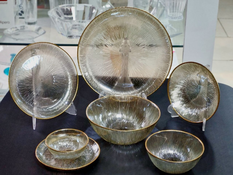 سرویس ۳۳ پارچه بلور نوری تازه مدل سولو شامپاینی لب طلا | مقاوم و نشکن | شش نفره