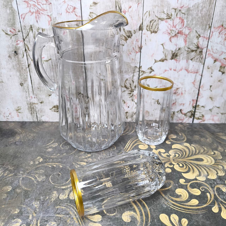 سرویس هفت پارچه پارچ و لیوان بلور برند نوری تازه مدل مودنا لب طلا| کیفیت درجه یک