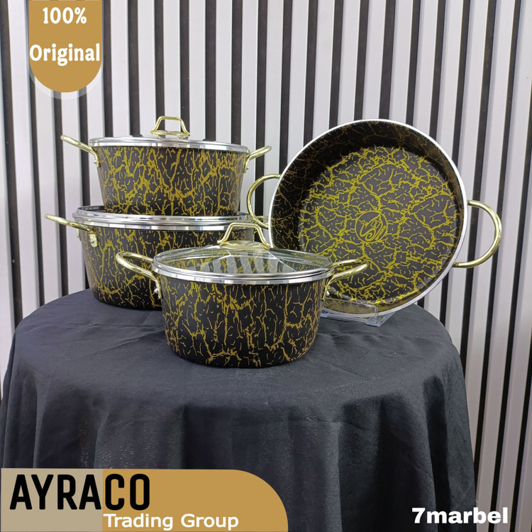 سرویس قابلمه ۷ پارچه گرانیتی طرح ماربل مشکی طلایی – برند کوشا