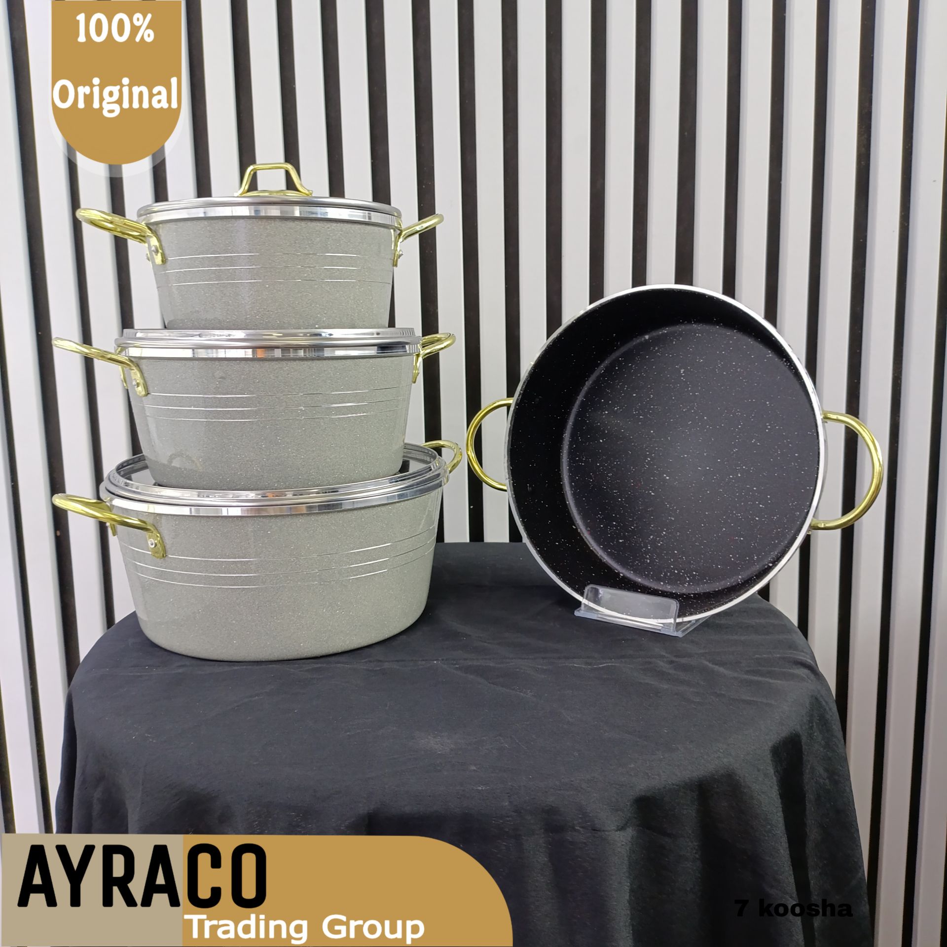 پوشش گرانیتی مقاوم و نچسب باعث میشود غذا به راحتی از ظروف جدا شود و شستوشو آسان باشد. دستههای ارگونومیک و مقاوم در برابر حرارت، استفاده ایمن و راحت را تضمین میکنند.