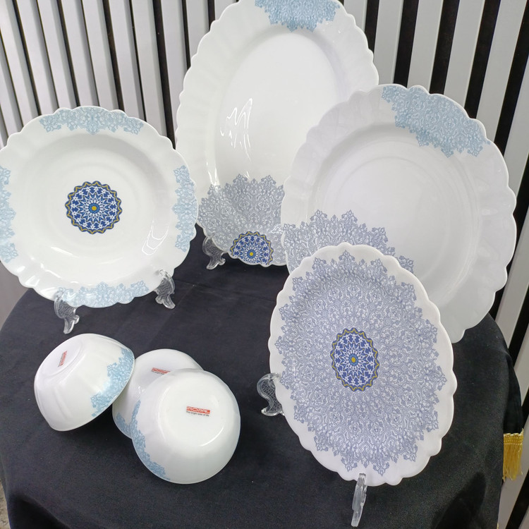 این سرویس در دو برند معتبر دینو و آیروپال عرضه میشود و از جنس آرکوپال سبک و مقاوم تولید شده است. طراحی قالب کنگره با لبههای موجدار و نقشهای قدیمی گلدار، یادآور ظروف کلاسیک و محبوب ایرانی است که در عین سادگی، اصالت و ظرافت را در کنار هم دارد.