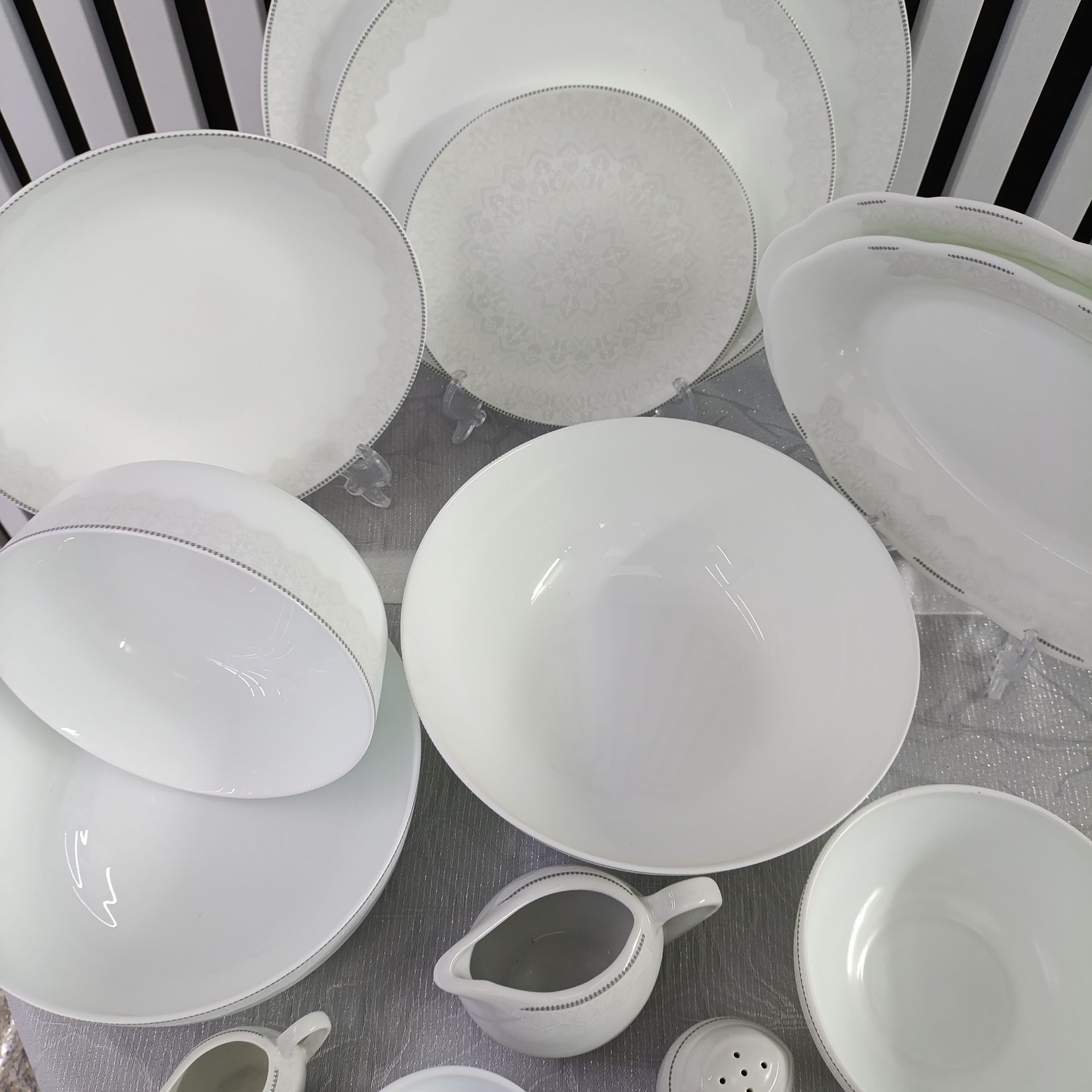 این مجموعه کامل، تمام نیازهای یک میز پذیرایی بزرگ و حرفهای را پوشش میدهد و باعث میشود که مهمانیهای شما با کیفیت و ظاهری شیک و هماهنگ برگزار شوند. طراحی حرفهای و استاندارد ظروف، مقاومت آنها را در برابر خط و خش، ضربههای معمولی و تغییرات دما تضمین میکند، و طول عمر طولانی محصول خیال شما را از بابت استفاده روزمره و مهمانیها راحت میکند.