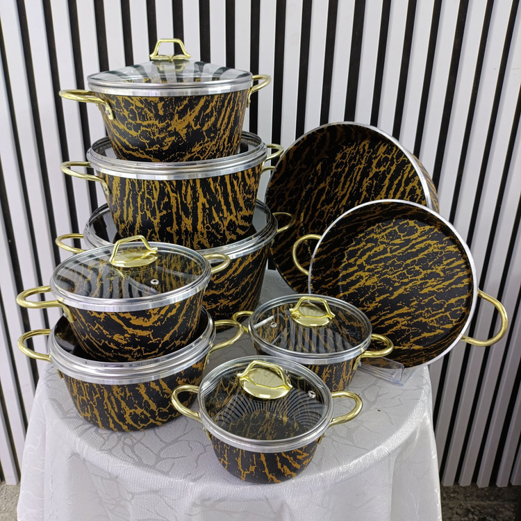 پوشش داخلی ظروف از جنس مقاوم و ضدخش بوده و در برابر حرارت، تغییر رنگ و چسبندگی عملکرد بسیار خوبی ارائه میدهد. بدنهی مستحکم و طراحی استاندارد باعث انتقال یکنواخت حرارت شده و کیفیت پخت غذا را بهطور محسوسی افزایش میدهد.
