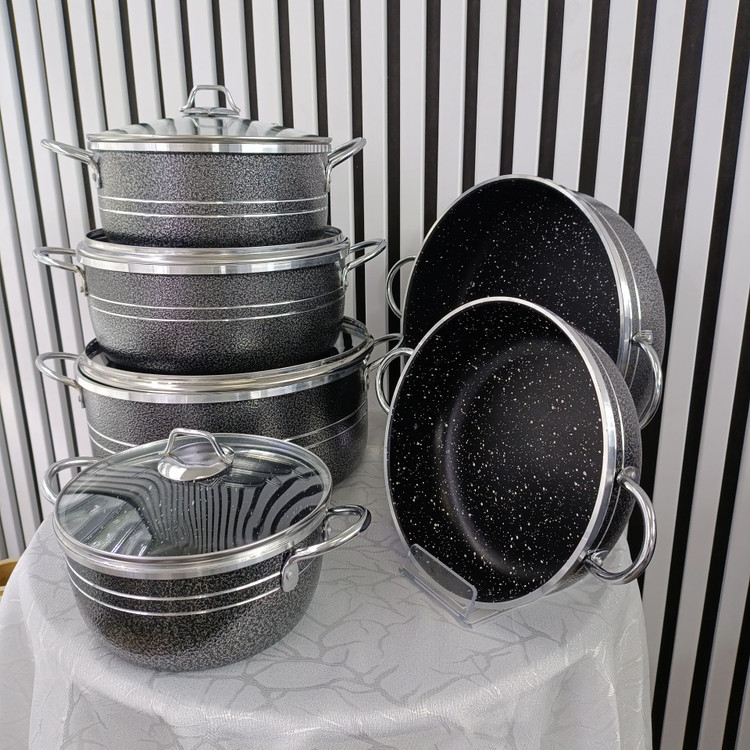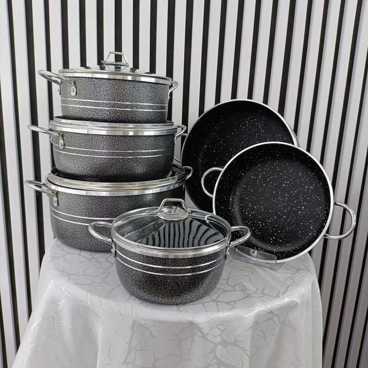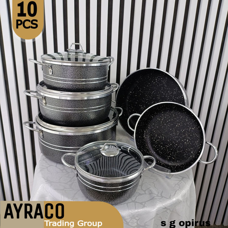 سرویس ۱۰ پارچه قابلمه اپیروس سربی گرانیتی – مجموعه حرفهای قابلمه و تابه در سایزهای بزرگ و کاربردی