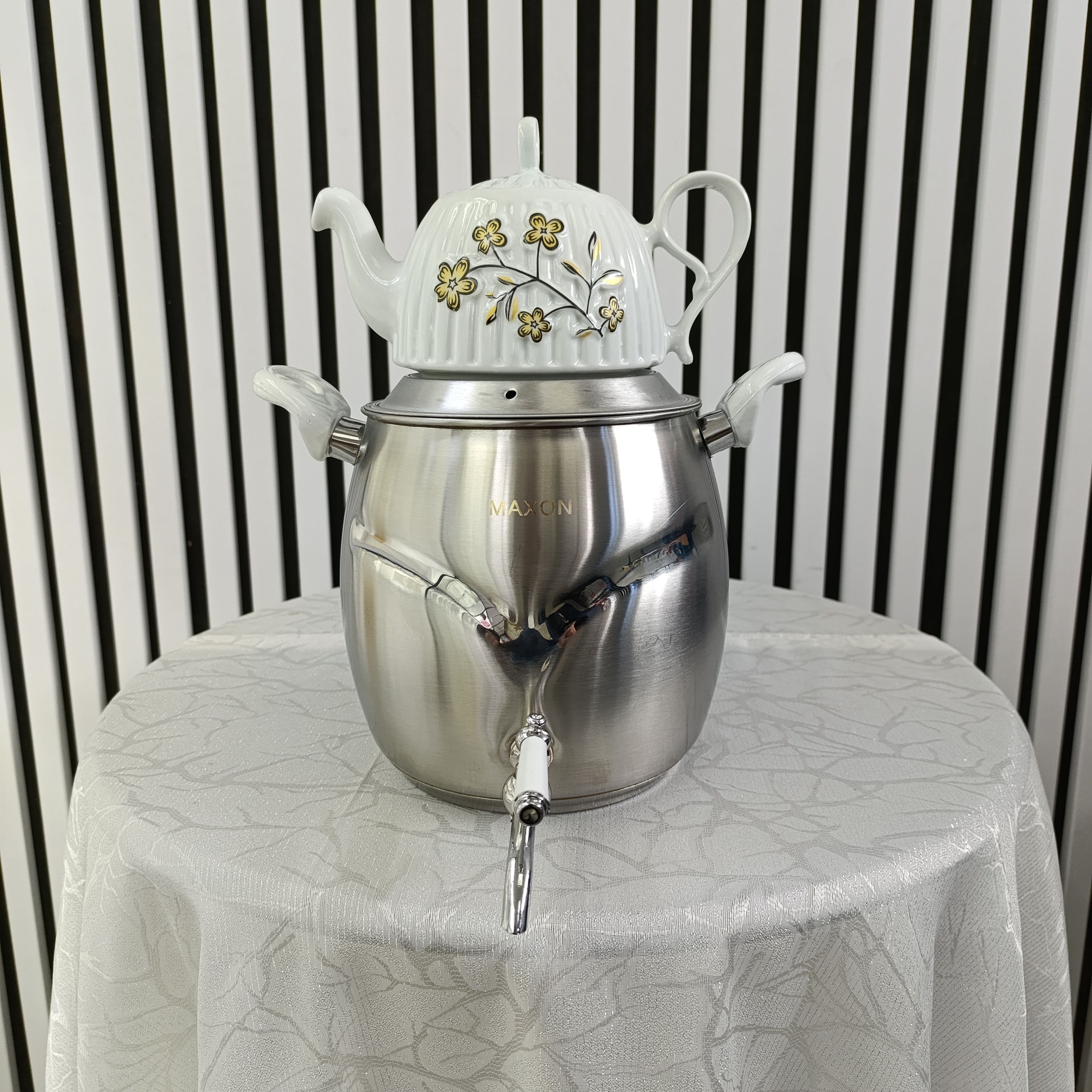 کتری و قوری استیل مکسون یکی از محبوبترین محصولات موجود در بازار ایران است که بهدلیل کیفیت ساخت بالا، دوام بسیار عالی و جوش آوردن سریع آب انتخاب بسیاری از خانوادههاست. این محصول با جنس بدنه استیل ضدزنگ و کف چدن چندلایه تولید شده که باعث انتقال حرارت یکنواخت، جلوگیری از سوختگی کف و افزایش طول عمر کتری میشود.