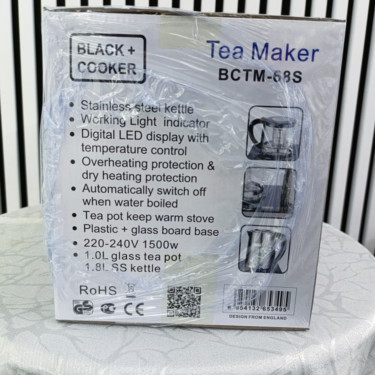 چایساز Black Cooker BCTM-68S با طراحی مدرن و کیفیت ساخت بالا، یک انتخاب حرفهای برای آشپزخانههای امروزی است. این دستگاه شامل کتری استیل با ظرفیت 1.8 لیتر و قوری شیشهای با ظرفیت 1.0 لیتر میشود و با توان 1500 وات، آب را بهسرعت جوش میآورد.