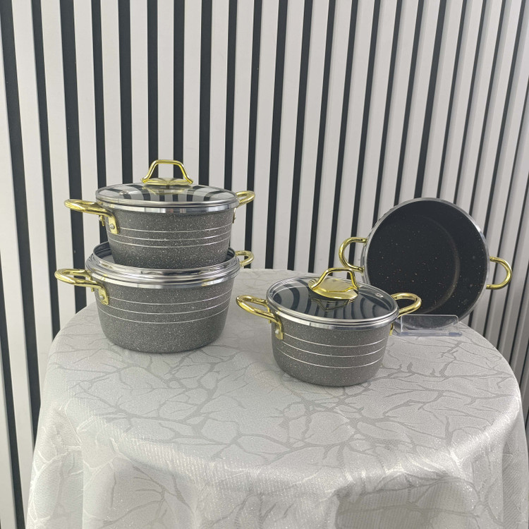 تمامی قطعات این سرویس از جنس گرانیت باکیفیت ساخته شدهاند؛ گرانیتی که در برابر خط و خش، سوختگی، لکهپذیری و تغییر رنگ مقاوم بوده و در عین حال به دلیل نچسب بودن، آشپزی را سادهتر و شستوشو را سریعتر میکند.