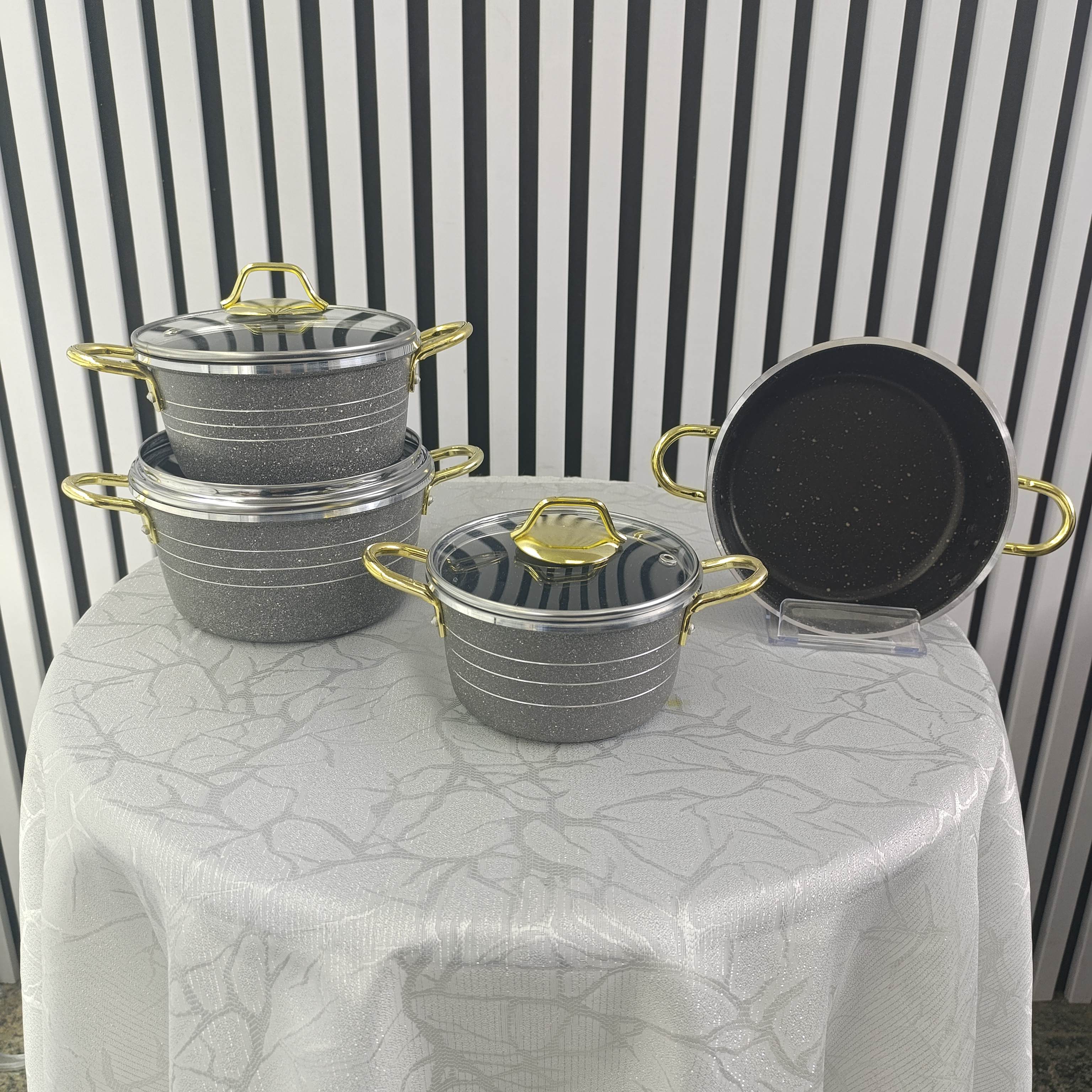 تمامی قطعات این سرویس از جنس گرانیت باکیفیت ساخته شدهاند؛ گرانیتی که در برابر خط و خش، سوختگی، لکهپذیری و تغییر رنگ مقاوم بوده و در عین حال به دلیل نچسب بودن، آشپزی را سادهتر و شستوشو را سریعتر میکند.