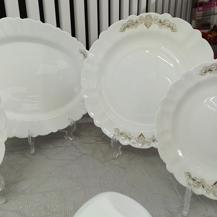 سرویس غذاخوری ۲۵ پارچه طرح نگین طلایی برند لئون | ست بشقاب آرکوپال لوکس و مقاوم
