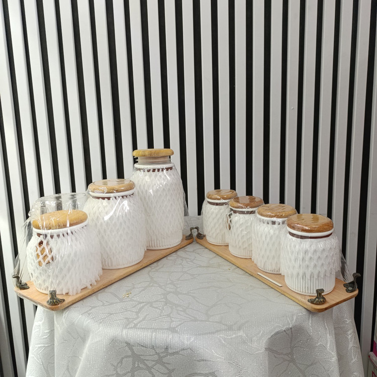 سرویس ۷ پارچه پا سماوری رنگ سفید ( ست جا ادویه ای ) | ست جا ادویه لوکس